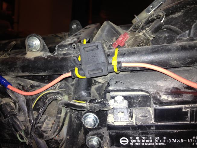 Well after having all my parts to put a power port on my bike, I finally got it done. I bought the port at O'reilleys. It is an all weather port that has a spring loaded door with gasket on it and the area where the ground and power wire go into the back are glued in really good with melted silicone or whatever you call it. Bought an inline fuse holder that is water proof too and extra 20amp fuses also from o'reilleys.