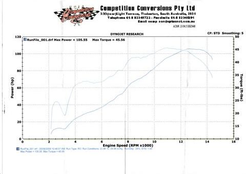 with the results, 105.55rwhp at 13,000rpm, and 45.56 ft-lbs (rw) at 10,800rpm, considering its a 04 model. I attached the results too.