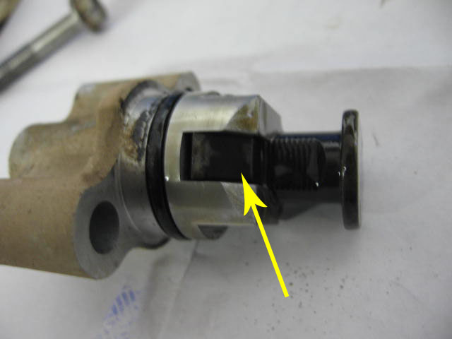OK, first off, besides basic tools your gonna need a torque wrench (something that can do 8.5 ft-lbs) metric feeler gauges, and a good micrometer to do the shim replacement. If just doing clearance check, basic tools and feelers will do. A note on feeler gauges: I bought myself a set that were metric only. I don't like using these sets with both metric and standard. They are usually standard sizes with metric conversions so you don't get exact metric numbers. But, that's just my preference. First give the bike a good wash to remove all the dirt accumulated. You may notice that I never gave a good wash, but that's my choice. I did wipe down all critical areas and gave a good blast with air. Next, remove seat, side guards, and fuel tank. In the next pic is what you'll see. I also removed wiring bracket (yellow arrow) and pulled the wires to one side. I also remove the ignition coil (red arrow) to have more room for cover removal. Attachment 15319 Once thats taken care of things look a little better http://i568.photobucket.com/albums/s...ps1f3263fe.jpg In the pic above you can also see the 3 bolts holding the cover down. Remove these and carefully remove the cover. Careful with the gasket. You will now see two camshafts. Naturally, front is exhaust and rear is intake. Next, remove both plugs on left side of engine case as indicated in the next pic. Top plug is where ya look for timing mark,bottom plug is where ya turn engine using 17 mm socket. Attachment 15320 So, while turning the engine counter-clockwise look at the intake lobe of the intake cam. Watch it push down on the lifter then come back up. At this point look in the top plug of the case. Slowly turn CCW until you see a mark with the letter "T" stamped alongside of it. You'll actually see a mark with "F" first. The T is just after it. Looking thru the hole this is what you should see: Attachment 15321 Looking at the cam lobe positions, the next pic shows what ya should see. Attachment 15322 And if you look at the cam sprockets the timing marks should be level/inline with the top surface of the head like so: Attachment 15323 Also note the mark "IN" is aft and the mark "EX" is forward. There are more marks present but the ones stated are the important ones. This what everything will have to look like when finished re-assembling. OK, now you can check the clearances. My intakes were good (0.15 mm), but exhaust was tight ( 0.14 mm)For my bike: the intake is 0,10mm - 0.19mm, exhaust is 0.15 mm - 0.24 mm. Anything outside this range will need to be adjusted accordingly. I knew mine were due for change. Last year I measured all my shims so I knew what to order. My originals are all 3.00 mm. So, I knew I needed 2.90 mm shims to bring me back in the upper range of the clearances. Got mine thru ebay for $5 each. Came by letter mail (the "Happy Riding" was a nice touch. :) Attachment 15324 Shim replacement: First step is to remove timing chain tension spring bolt and spring and then the 2 bolts for the mount. then pull the mount out. refer to next pic: Attachment 15325 This is what the mount looks like when removed: Attachment 15326 Important: tensioner must be reset. Lift up on the locking pawl (yellow arrow)) and push the tensioner rod fully in. Now it should now look like this: Attachment 15327 Now comes the harder part: OK... so now we have to remove the camshaft cover. In the next pic you can see all 8 bolts loosened. Attachment 15328 After removing bolts, cover can be removed. Next it would be a good idea to tie the timing chain off to some part of the bike to keep it from falling way down into the engine. Now you can remove the exhaust cam (if doing exh clearances). To remove cam its sorta of a tilt/tip/lift process. Thats about the only way I can explain it. With cam removed you can now take up one of the lifters. Only do one at a time to avoid mixing of parts. In the next pic you can see the valve spring where the shim sits once the lifter is removed. To the right you can see the other lifter still in place. Attachment 15329 My shims stayed stuck to the underside of the lifter. Keep this in mind when removing lifter. Place hand under it as soon as possible to prevent dropping into the engine somewhere. Heres a pic of the bottom of the lifter and the shim alongside of it. Attachment 15330 Measure this shim with the micrometers to figure out what shim is required to put back in. Place new shim on top of valve as indicated in a previous picture. Then place lifter back in place. Repeat for any other lifters/shims. Once this is complete you can start reassembling. Getting the cams back in is a bit tricky. It will probably take a couple of tries. When all is right you should be at your original marks on the cam sprockets and flywheel as you set up earlier. If all looks well re-install cam cover. On the KLX the torqueing sequence is stamped in the cover. Also on the KLX bolts #1 and #6 are the two that are longer. The cover goes torqued to 8.5 ft-lbs (or 102 inch-lbs if you prefer). I like like to torque in steps rather than full torque right from the beginning. Next you can install the cam tensioner mount and then the spring. Now, very slowly using the flywheel turn engine by hand several revolutions. If at any time a resistance (besides compression) is felt "STOP" you may have screwed something up. Hopefully this doesn't happen. All is good... perfect. Re-assemble the rest of the bike. This would also be an ideal time to shuff in a new spark plug while it's easy to get at as well. Happy Wrenchin'. Relic. |