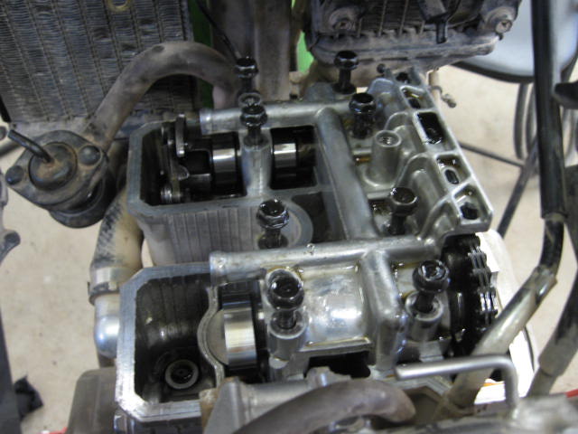 Nice writeup and pics. I would add suggestion of stuffing a rag in down in the side of the head where the cam chain dissapears to prevent anything accidently dropped from falling down in the engine.