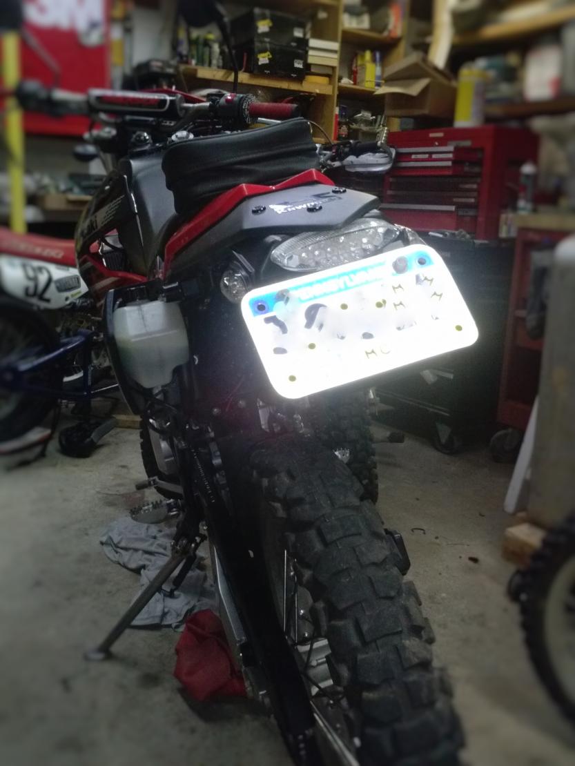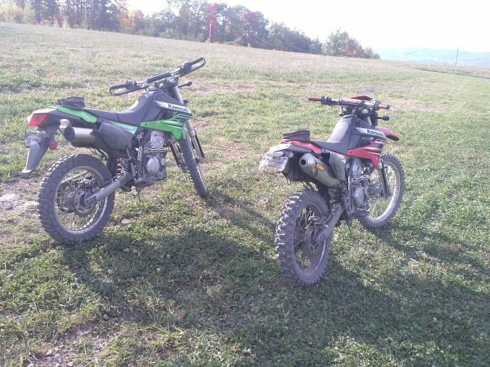 I had an old XR250 I was planning to make street legal. Plans change, I brought a 2012 KLX250S home instead. Since I already had the kit, I thought I would tack it on the back and replace that big bulky tail light assembly that comes stock. The prior owner had already trimmed the bottom end off (nicely), and trimmed the reflectors from the plate hanger, but it just wasn't enough for me. The first pic is the finished result, next to my buddy's bike (same make/model/year, without any mods at all). The second pic is from a day of riding outside of Pottsville, PA.