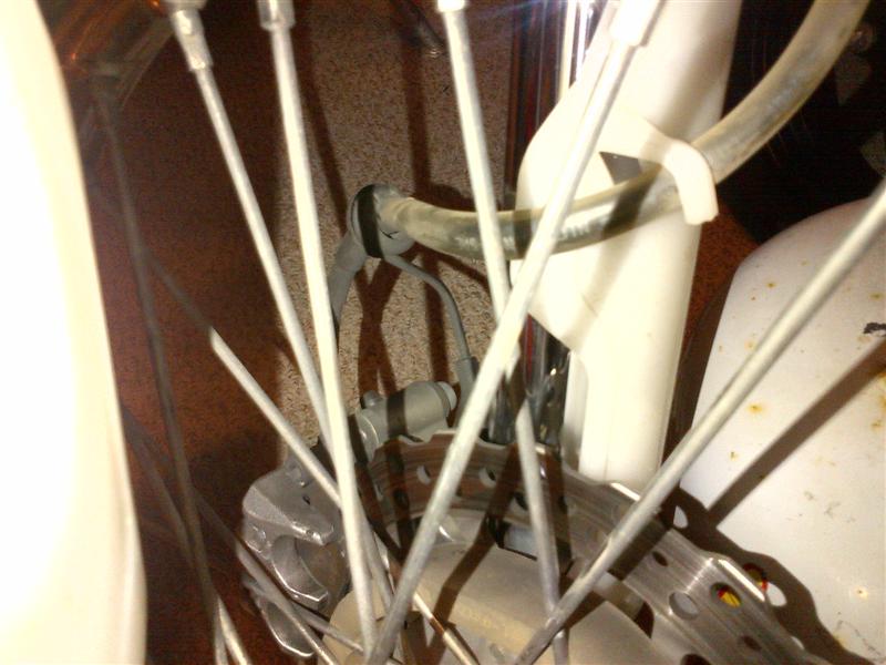 My braided line is running from the backside of the caliper and up the back of the fork stanchion and leg. I like it back there as it seems less likely to be grabbed by a branch or other trail objects. Are the '09 and later models that much different?