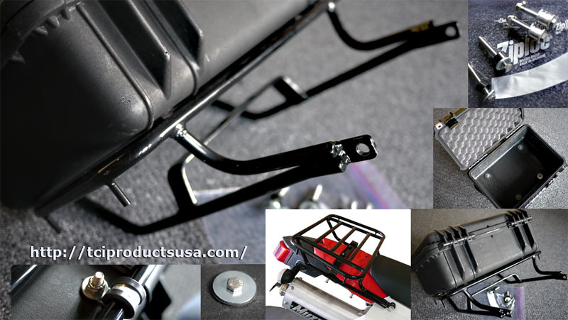 Excellent condition TCI Products Borrego rack with Pelican 1450 case and all mounting hardware. Recently sold my KLX250sf. The rack retails from TCI for $119.95 and the case averages about $90. Will sell the whole package for $100 which includes UPS ground shipping anywhere in the continental U.S.