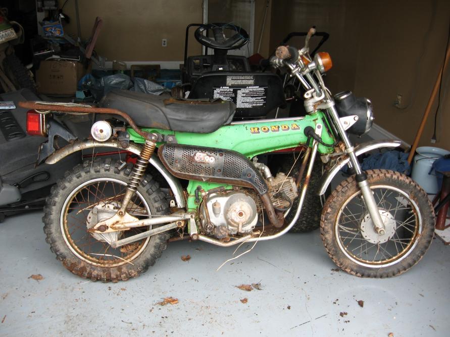 Hey guys...I recently picked up a little project bike to work on this summer. I plan on restoring the bike and giving it to my daughter to play with. It's a 1973 Honda ST90...most of the parts are there and it ran when it was parked some years ago. Not seized, but needs a fair amount of elbow grease and TLC. Even found the original tool kit still in the container behind the seat! But before i get started on this, I was wondering who may have any information on these bikes...any at all would be helpful. I pulled the plug and will be picking up a new one today, but would also like to pick up some fresh oil...but I don't know what type of oil is used in the bike....so if anyone has any helpful information, I'd greatly appreciate it. Thanks.