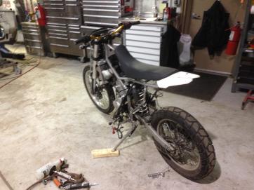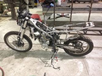 it all started from some bent handlebars. I needed to replace them and then i started tearing off all the body panels, exhaust, airbox, gas tank. decided i am going to do the pod, if it works, do an under-tail muffler, chopped the rear frame right after the seat mounts, redoing all the turn signals, brake and rear running light, relocated the coolant res and battery, going to lace up a matching 18 inch rim for the front. basically turning it into a custom looking supermoto style KLX, prob 80% street 20% offroad.