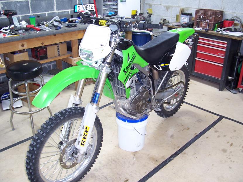 Just got done with the bike and rode around the block, and was very impressed with how the overall way the bike rides now, thought i'd posts some pics. Still have to put the handguards and front blinkers on yet. This bike feels totally different after a 25 lbs weight loss and 13-48 gearing. It's alot more flickable and will stand the front up 1-2-and with very little help 3rd too. And yes it's a 250 with stock carb and all the free mods with pipe and open airbox. Next winter comes big bore, carb, and head work. For now im alot happier with the weight loss, gearing and suspension work.