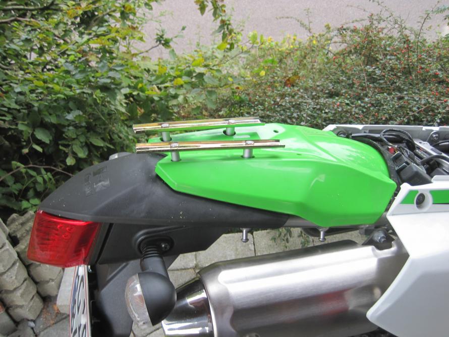 Oh - I forgot; used 10mm alloy pipe to cut distance tubes from - thereby raising the mounting bars over the rear fender.