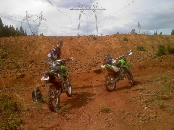 The day goes on, the rest of the family goes back to town, and the riders haven't got back yet. It's getting kind of late so I take off to find them. Their plan is to ride the trail from camp, looping around to easier trails, then forest service roads. So I ride the opposite direction, on the forest service road back around. I only get about 5 miles up the road and find them parked off the side. They are tired, beaten, and bruised. They are rating the trail as "expert" and one even says "advanced expert." Seven miles in six hours. I'm relieved I didn't ride with them, as I'm the noob to this dirt bike stuff.