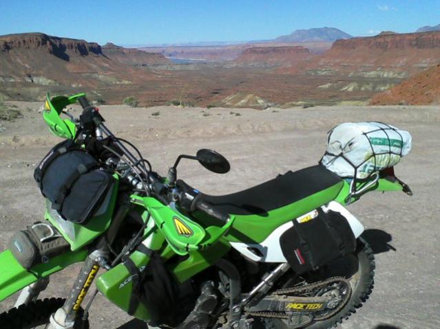 You can do all kinds of creative things to tote stuff on rides. Since I often ride alone in very remote areas, I carry a decent amount of stuff. I don't camp off the bike, but I might have to spend the night due to a mechanical or such after I send a non-injury SPOT message. I also use a decently large backpack. While I might need tools, parts, some food, water, and something to keep warm while stranded at night, I also have to ride some decently challenging terrain. I can't load up like a Winnebago and still handle the bike in some of these situations. I try to keep the weight and amount of "goods" reasonable.
