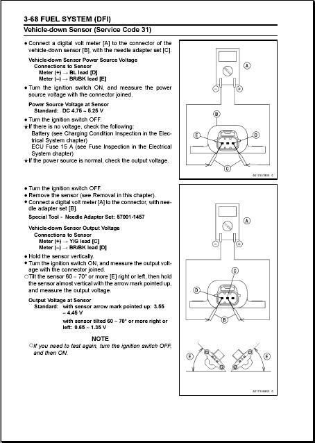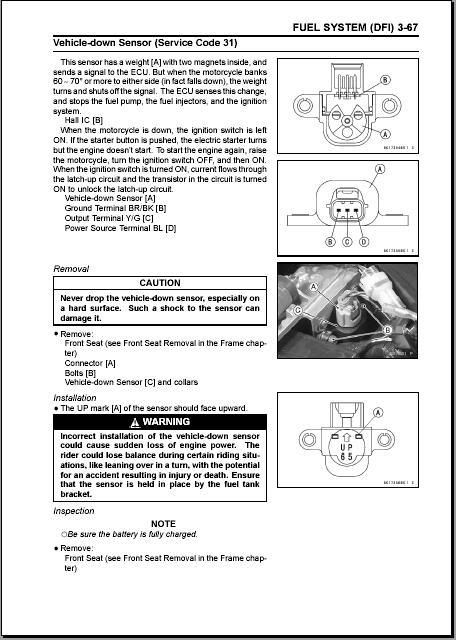 Also if you are looking for it in the manual, it's called the vehicle-down sensor and found in the fuel section since it cuts off the fuel supply when activated. Here are three pages about the vehicle-down sensor right out of the service manual.