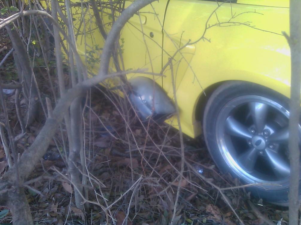 Here are pictures from my pony when she got wrecked. The first picture of the dented fender and wheel is my damage. The subsequent pictures are those the tow company did in addition to severely damaging my paint job to include scratches, dents, chipped paint, and additional body damage.